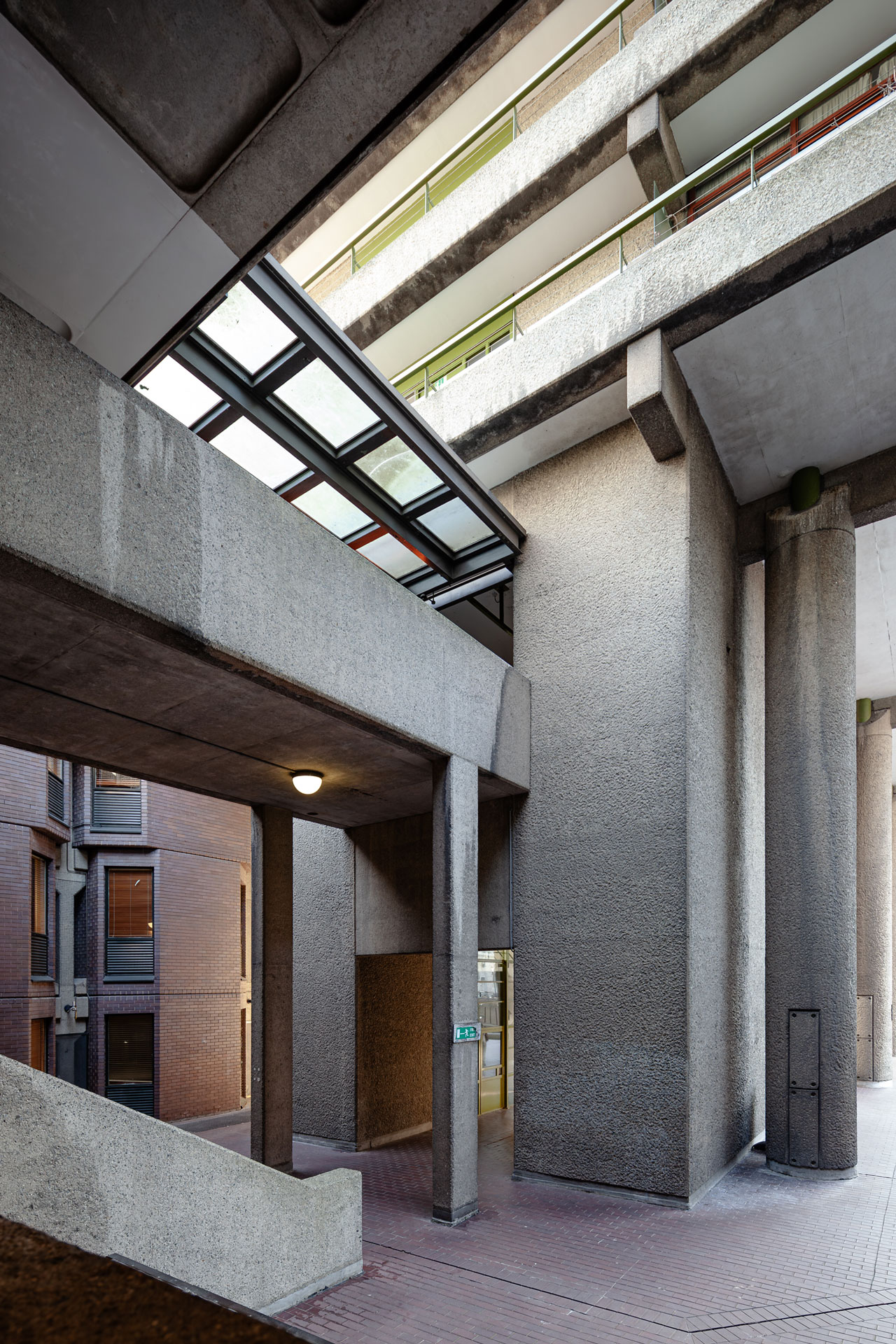 Das Barbican Centre in London ist ein herausragendes Ensemble brutalistischer Architektur, das außergewöhnlich gut erhalten ist. Es wurde 1982 eröffnet und beherbergt hunderte Wohnungen sowie Kultur- und Freizeitangebote. Neben der stimmigen Architektursprache ist auch die städtebauliche Organisation des Komplexes einzigartig. Durch die Trennung des Auto- und Fußverkehrs entstehen zwischen den Gebäuden großzügige öffentliche Räume – außergewöhnlich in der Londoner City. Treppen und Gehsteige verbinden die einzelnen Fußgängerebenen miteinander.