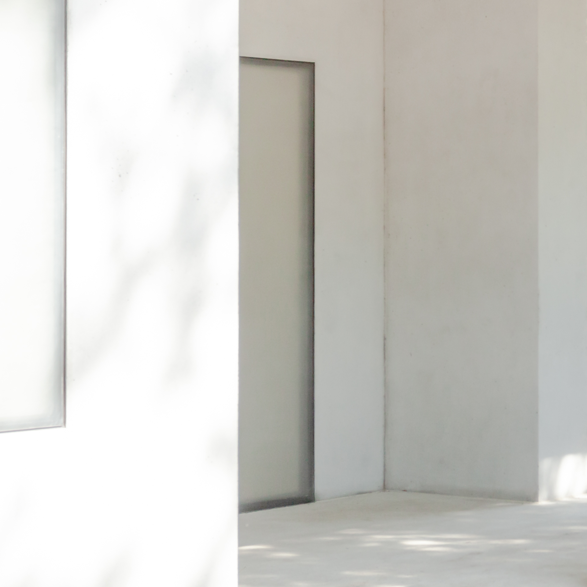 Reduzierte Farbigkeit und das quadratische Format zeichnen die Serie aus. Dabei erzeugen die weißen Wände, durch unterschiedliches natürliches und künstliches Licht, abstrakte Flächen im quadratischen Rahmen.