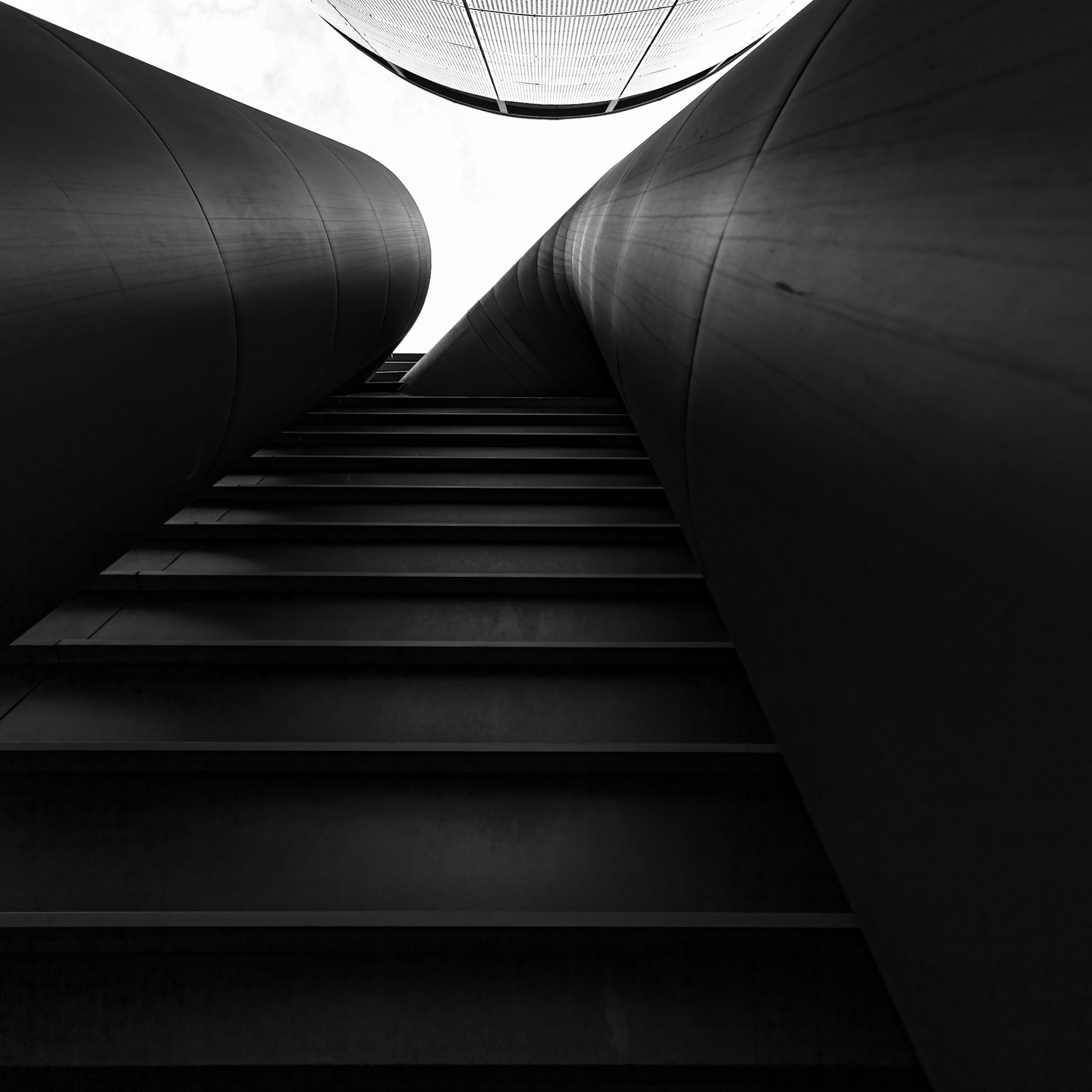 Die Auffahrrampen mit den gelochten Metallpaneelen werden zu abstrakten Gebilden. Durch die Lochung kann man die dahinterliegenden Strukturen  erahnen.